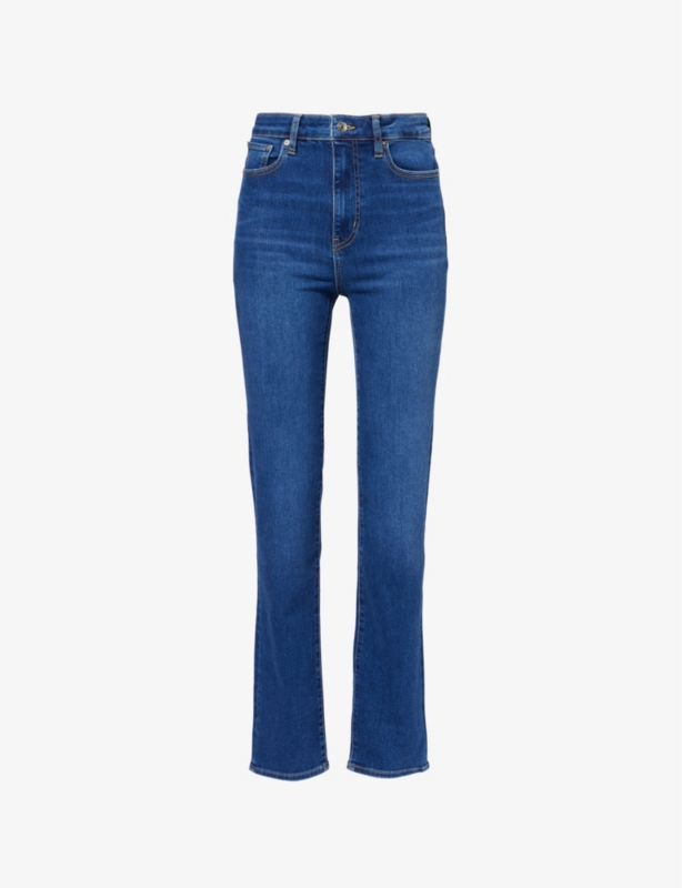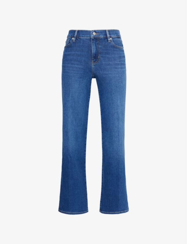- Regular fit, mid-rise, flared leg, belt loops, five pockets