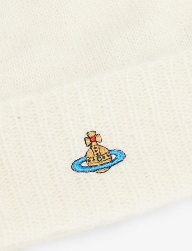 - Domed crown, ribbed turn-up brim, brand embroidery to centre, fluffy finish