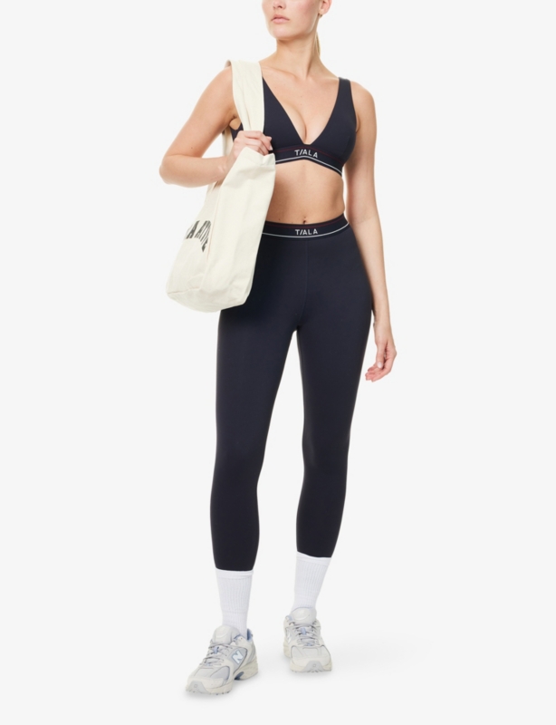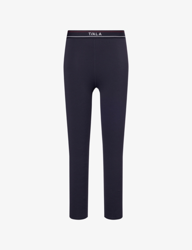 - Fitted, high rise, tapered leg, wrapover waistband, exposed seams, brand embroidery at back waistband, concealed slip pocket at back waistband