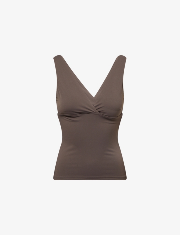 - Slim fit, square neckline, sleeveless, internal bra with removable padding, embroidered branding at back