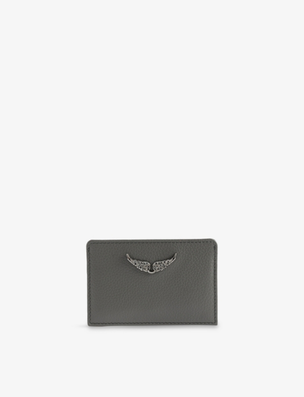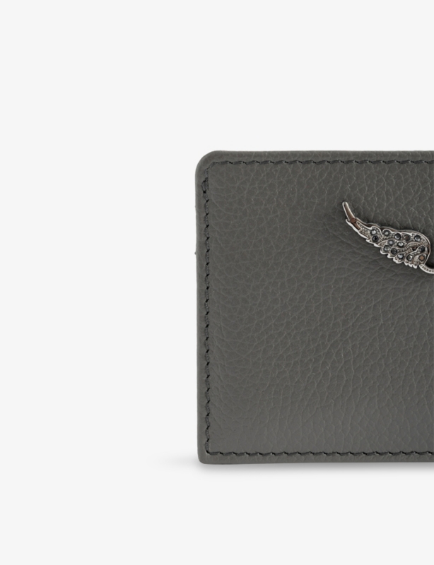 - Rectangle shape, embellished wing motif at front, silver-toned hardware, twelve card slots, zip up middle compartment, two compartments, three slip pockets, interior engraved branded lettering, pebblegrain texture