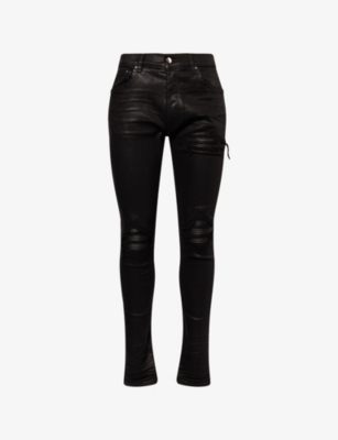 In our selection you can expect to find distressed denims with graffiti detailing and contrasting panels. Look out for black AMIRI jeans with an iconic skin-tight silhouette and just enough stretch to keep them comfortable. There are ripped jeans and then there are AMIRI ripped jeans. Slashed denims come spliced with deconstructed leather patches and bandana trims. Don't be surprised to also discover paint splatters and appliquéd-prints.