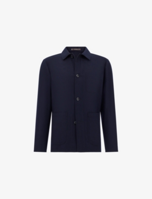 Removable-Hood Single-Breasted Stretch Wool-Blend Jacket