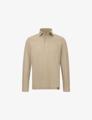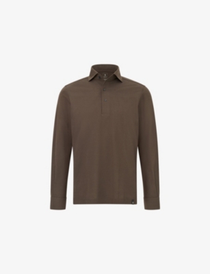 Bowling-Collar Long-Sleeve Cotton-Blend Polo Shirt