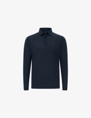 Polo-Collar Long-Sleeve Wool-Blend Polo Shirt