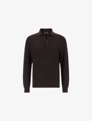 Long-Sleeve Knitted Merino-Wool Polo Shirt