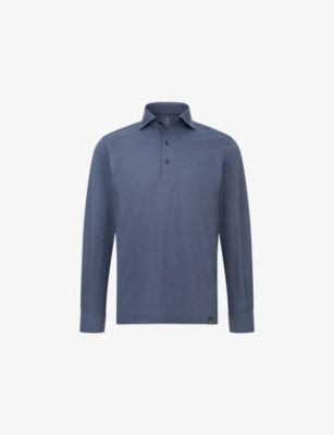 Bowling-Collar Long-Sleeve Cotton-Blend Polo Shirt