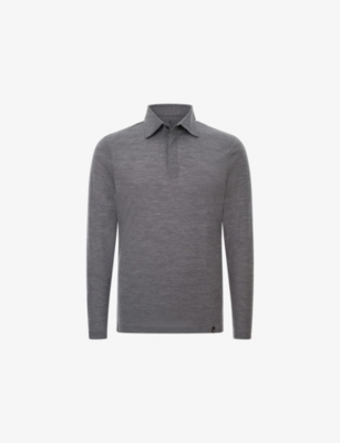 Polo-Collar Long-Sleeve Wool-Blend Polo Shirt