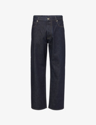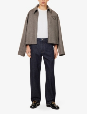 Brand-patch contrast-stitching wide-leg regular-fit wool trousers