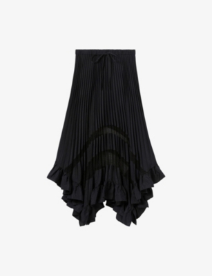 Pleated-Panel High-Waist Stretch-Woven Midi Skirt