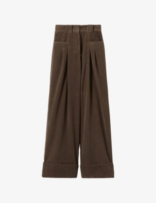 Button-Embellished Wide-Leg Mid-Rise Cotton-Corduroy Trousers- Discount price:$1,390.00