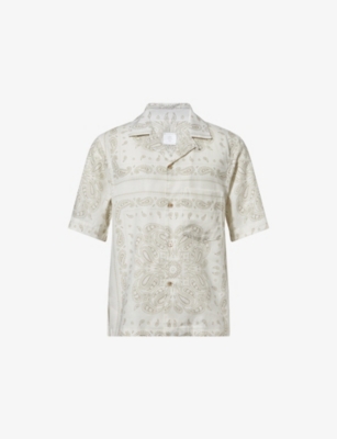 Floral Graphic-Print Short-Sleeved Linen-Cotton Shirt