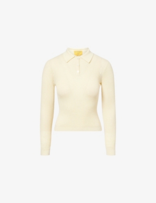 Shrunken Polo Fine-Knit Cashmere Top