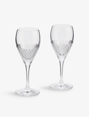 Impress your guests at your next gathering with our striking range of luxury wine glasses. Choose a long-stemmed, unadorned glass for a classic shape and style, or opt for lace designs or wedge-cut embellishments to add a hint of personality. Depart from the norm with a stemless option, or pick one accented with subtle colour. A table laid for outdoor drinks will look especially inviting accessorised with crystal-glass wine goblets - iridescent pearl glassware can add a touch of shimmer to a dinner party tablescape, too.