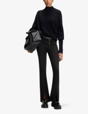 Flap-pocket wide-leg high-rise stretch-woven trousers
