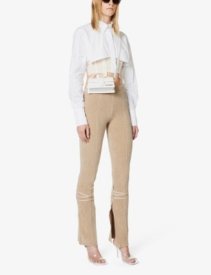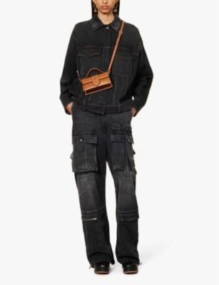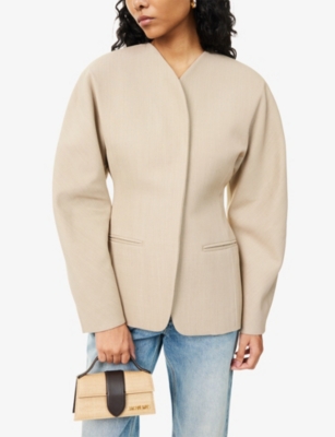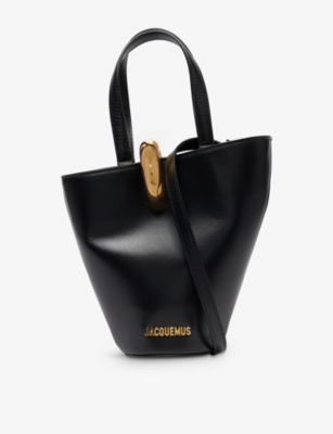 The Bambola Asymmetric Raffia-Effect Woven Bucket Bag