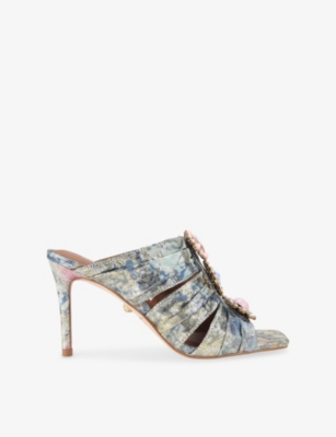 Crystal Chain Snakeskin-Embossed Leather Heeled Mules