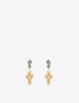 Sonia Petroff Lobster aquamarine, diamond and 24ct yellow gold-plated brass earrings- Price:$3,300.00