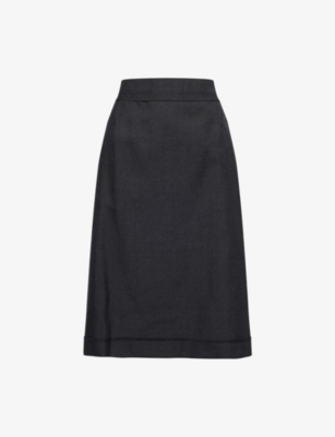 Satin-Waistband Regular-Fit Stretch-Woven Midi Skirt