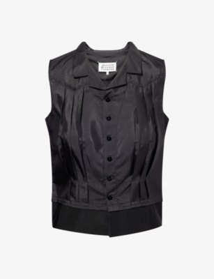 Pleated-Panel Asymmetric Woven Midi Skirt