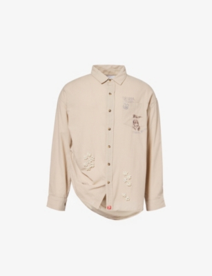 Anti-wrinkle text-print regular-fit cotton shirt- Discount price:$640.00