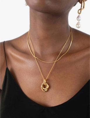 Molten Snow Twisted 18ct Yellow Gold-Plated Brass and Zirconia Pendant Necklace- Price:$1,260.00