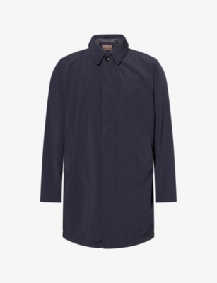 Pointed-Collar Long-Sleeve Stretch-Nylon Car Coat