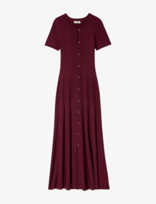 SANDRO: V-neck contrast-cuff knitted midi dressSANDRO: V-neck contrast-cuff knitted midi dress