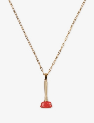 Seletti wears TOILETPAPER Plunger Pendant 18ct Yellow Gold-Plated Stainless-Steel Necklace