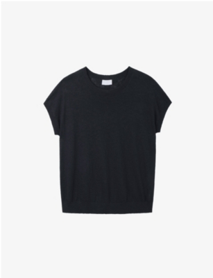 Round-Neck Curved-Hem Linen-Blend Top- Discount price:$495.00