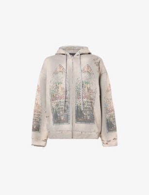 Engulfed Graphic-Print Zip-Up Cotton Hoody