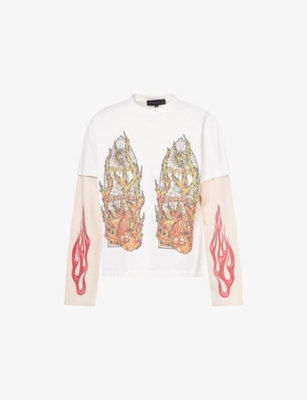 Flame Glass Graphic-Print Layered Cotton-Jersey Top