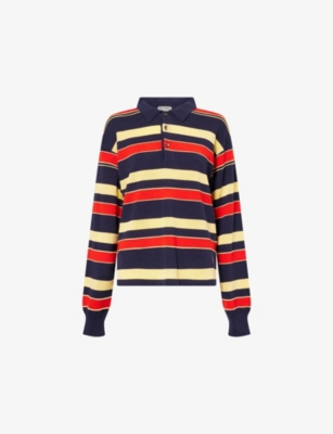 Across our range of ladies' long-sleeve tops, encounter pieces sure to enliven a casual ensemble. Figure-framing bodysuits provide a flattering silhouette, while oversized iterations offer draped shapes for relaxed styling. For smarter days, choose a structured shirt or softly woven blouse. Expect delicate detailing, from lace collars to curved hems and gathered pleats to scalloped trims. Vibrant patterns appear throughout, with classic designs including vertical stripes and ditsy floral prints. Looking for something bolder? Opt for a top decorated with an all-over graphic print. We're talking sprays of graffiti, newspaper cuttings and patchwork collages.Â
