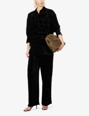 Ruffle-Collar Lace-Trim Textured Silk Shirt