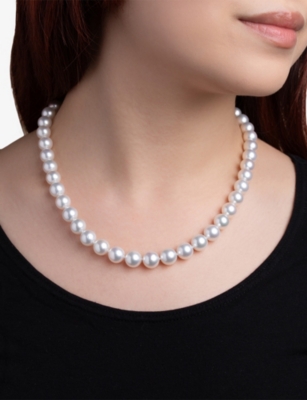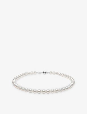 Diamond Classic 18ct white-gold, Akoya-pearl and 0.22ct descending-diamond necklace- Price:$21,450.00