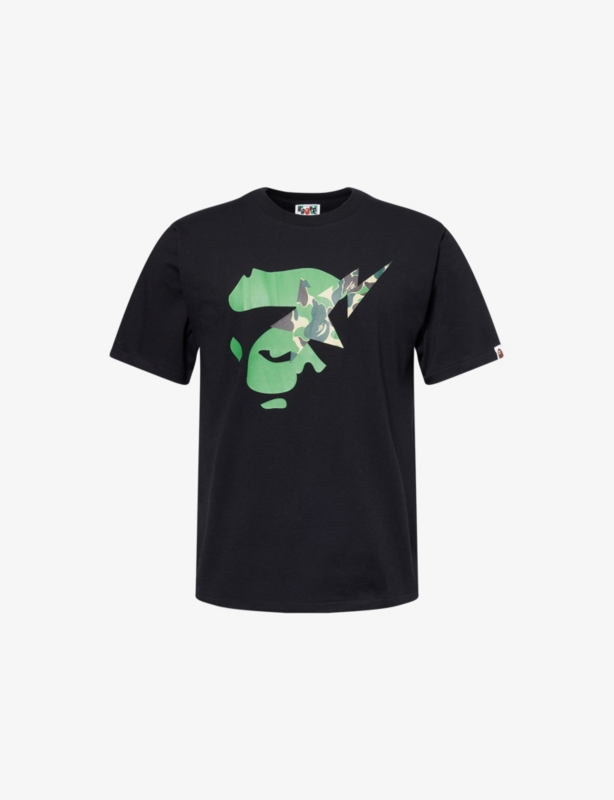 - Regula fit, ribbed crewneck, short sleeves, ape head and brand print at front, brand and text print at back