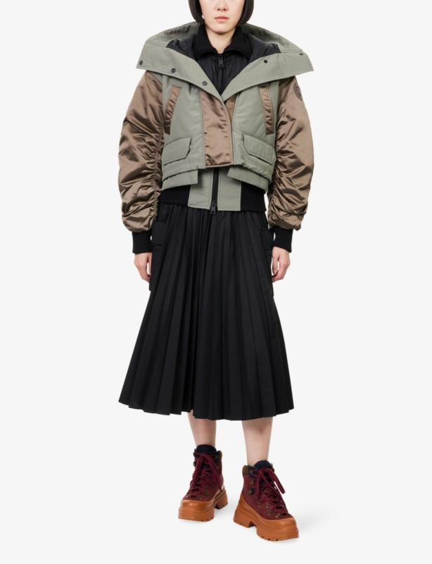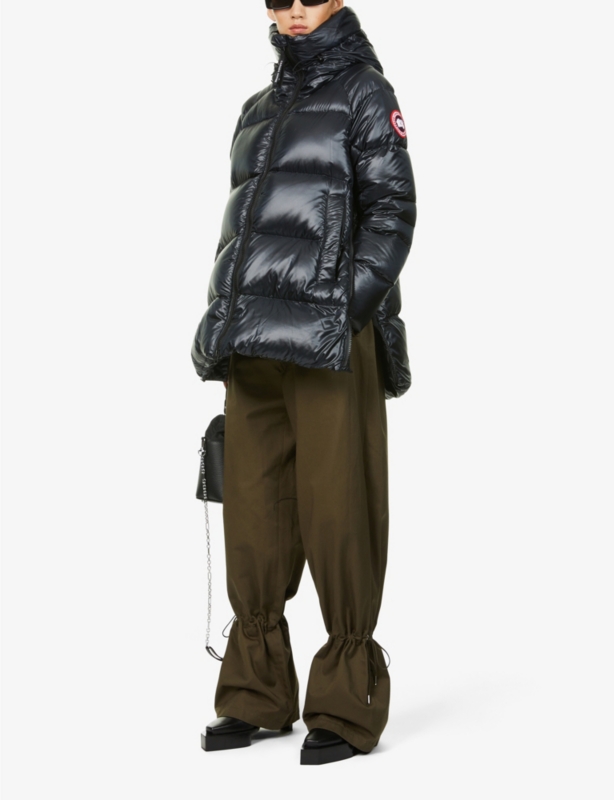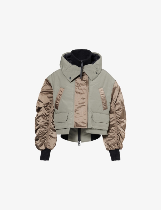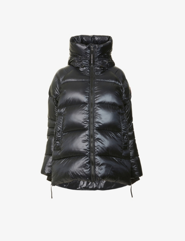 - Regular fit, funnel neck, hood, long sleeves, logo patch at sleeve, angled pockets at front, quilted and padded, branded hardware