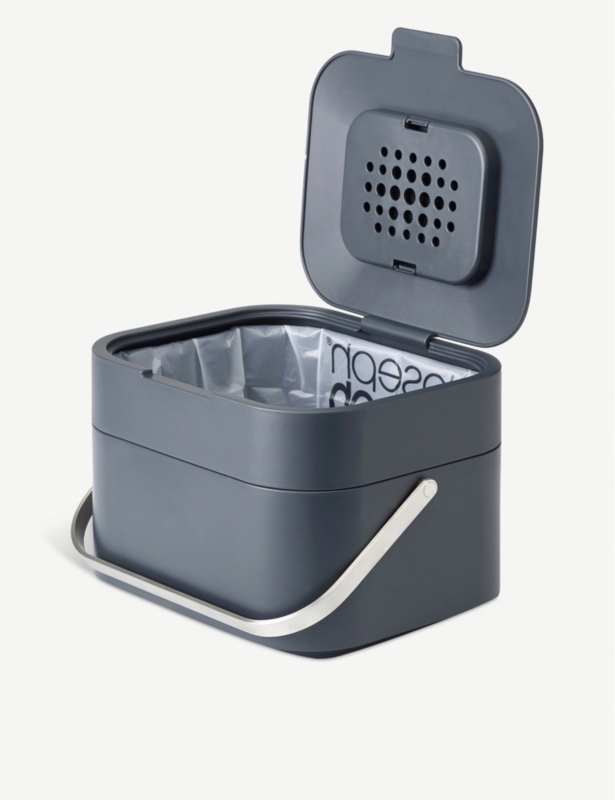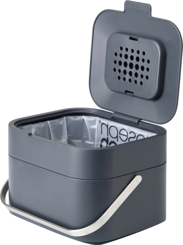 - Three 30-litre fabric tote bags to separate washing, lid with handle, branding at the front, each bag has handles at the top, fabric exterior