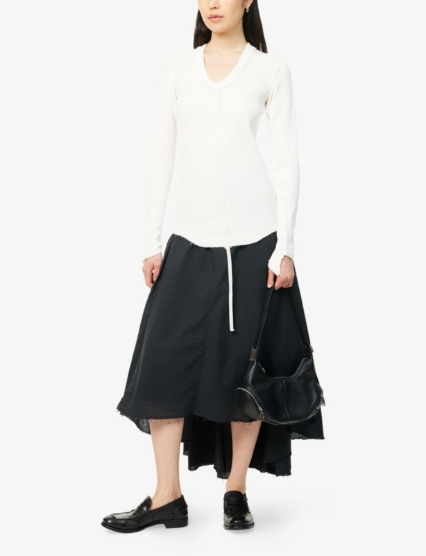 - Regular fit, scoop neckline, sleeveless, ribbed texture, raw trims