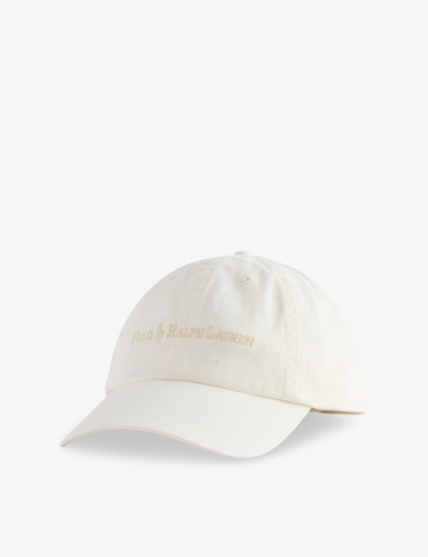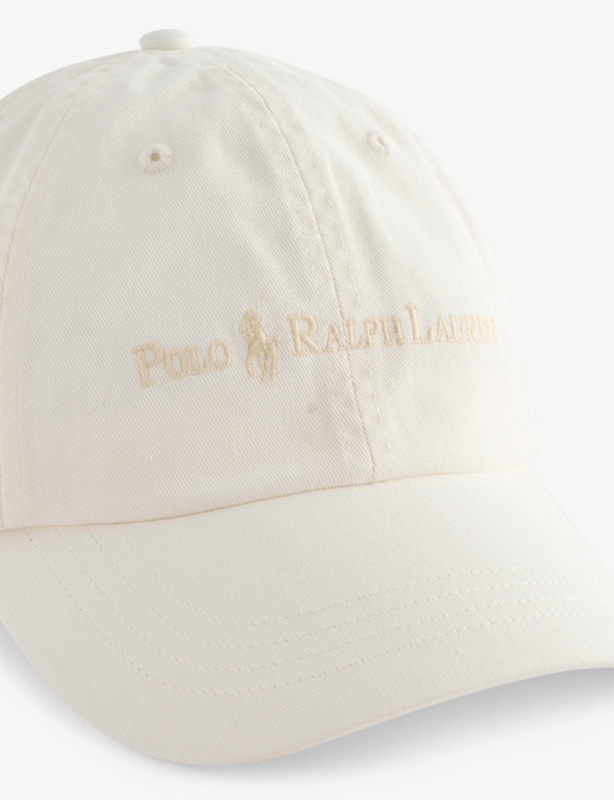 - Curved peak, seersucker design, embroidered logo at front, embroidered ventilating eyelets, striped, adjustable buckled strap on the back