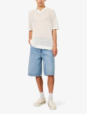 Short-Sleeve Crochet Cotton-Knit Polo Shirt