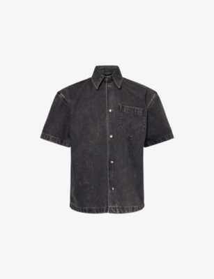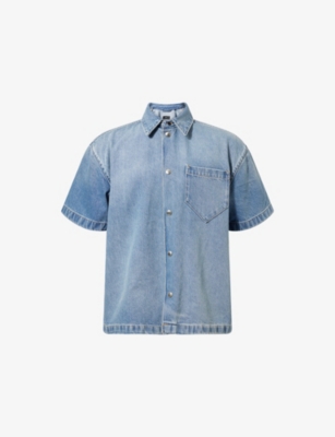 Faded-Wash Patch-Pocket Denim Overshirt