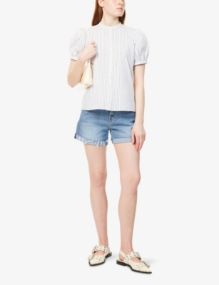 Frayed Mid-Roll Stretch-Denim Shorts