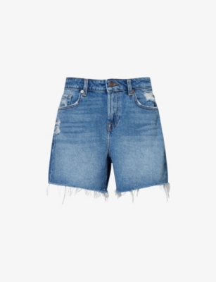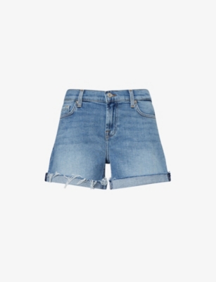 Frayed Mid-Roll Denim Shorts