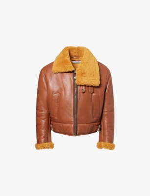 Wide-Collared Buckled Leather And Shearling Aviator Jacket