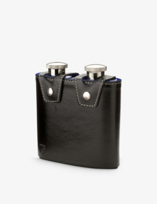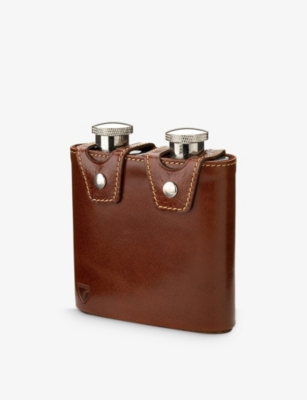 Double stainless-steel and leather hip flask- Discount price:€86.00