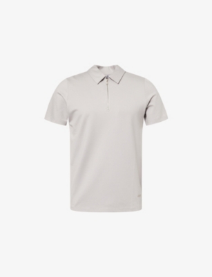 Zip Short-Sleeves Stretch-Woven Polo Shirt