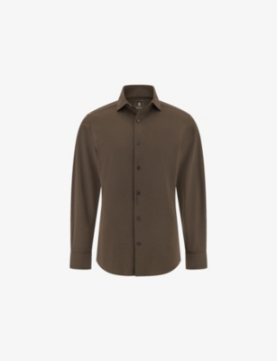 Closed-Collar Regular-Fit Cotton-Blend Jersey Shirt