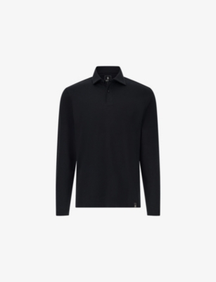 Bowling-Collar Long-Sleeve Cotton-Blend Polo Shirt