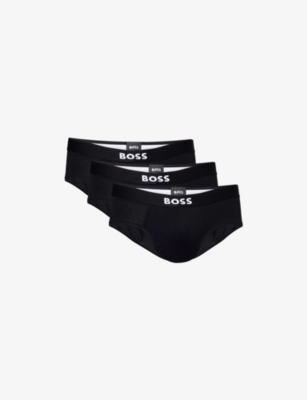 BOSS ONE x David Beckham Logo-Waistband Pack of Three Stretch-Cotton Hipster Briefs- Price:€58.00